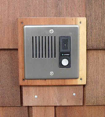 of the more common applications for your information. Apartments/condominiums: Consisting of a panel with a speaker and individual call buttons at the main entry and one or more speakers or handset stations in the units. The visitor pushes a button corresponding to a tenant. The unit inside buzzes or rings and the tenant goes to the speaker/handset to converse and allow or deny access. Homes: Home intercoms are usually divided into two types of systems; an all call, all respond system or a selective call system.
